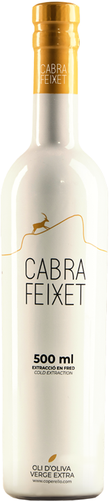 Cabra Feixet és un oli d’oliva extra verge elaborat exclusivament a través de procediments mecànics. L’oli és resultat de la selecció de les olives morruda i sevillenca, unes varietats cultivades a les terres del Perelló i que fa que sigui un oli que destaca per la seva qualitat excepcional.